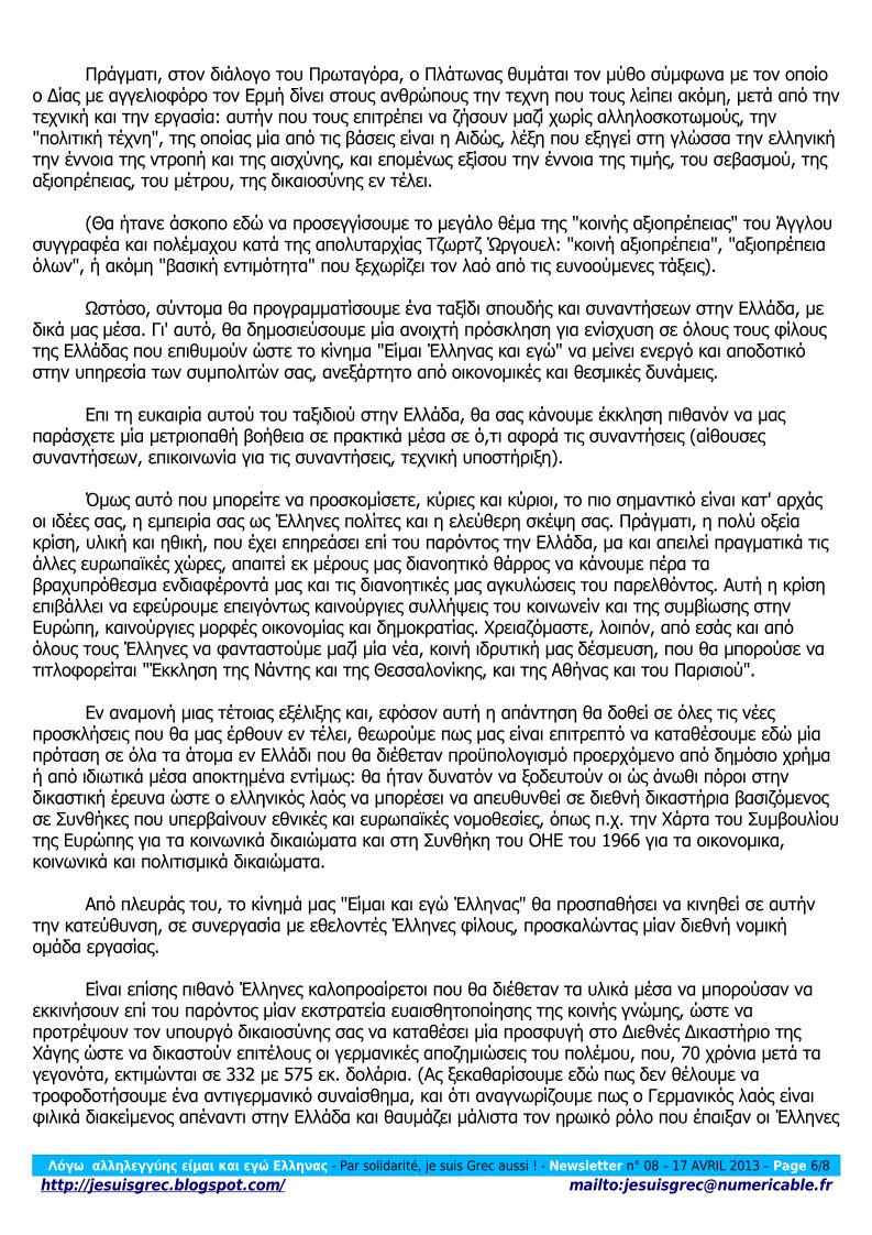 grecs qui le souhaiteront, échanger, écouter leurs analyses et